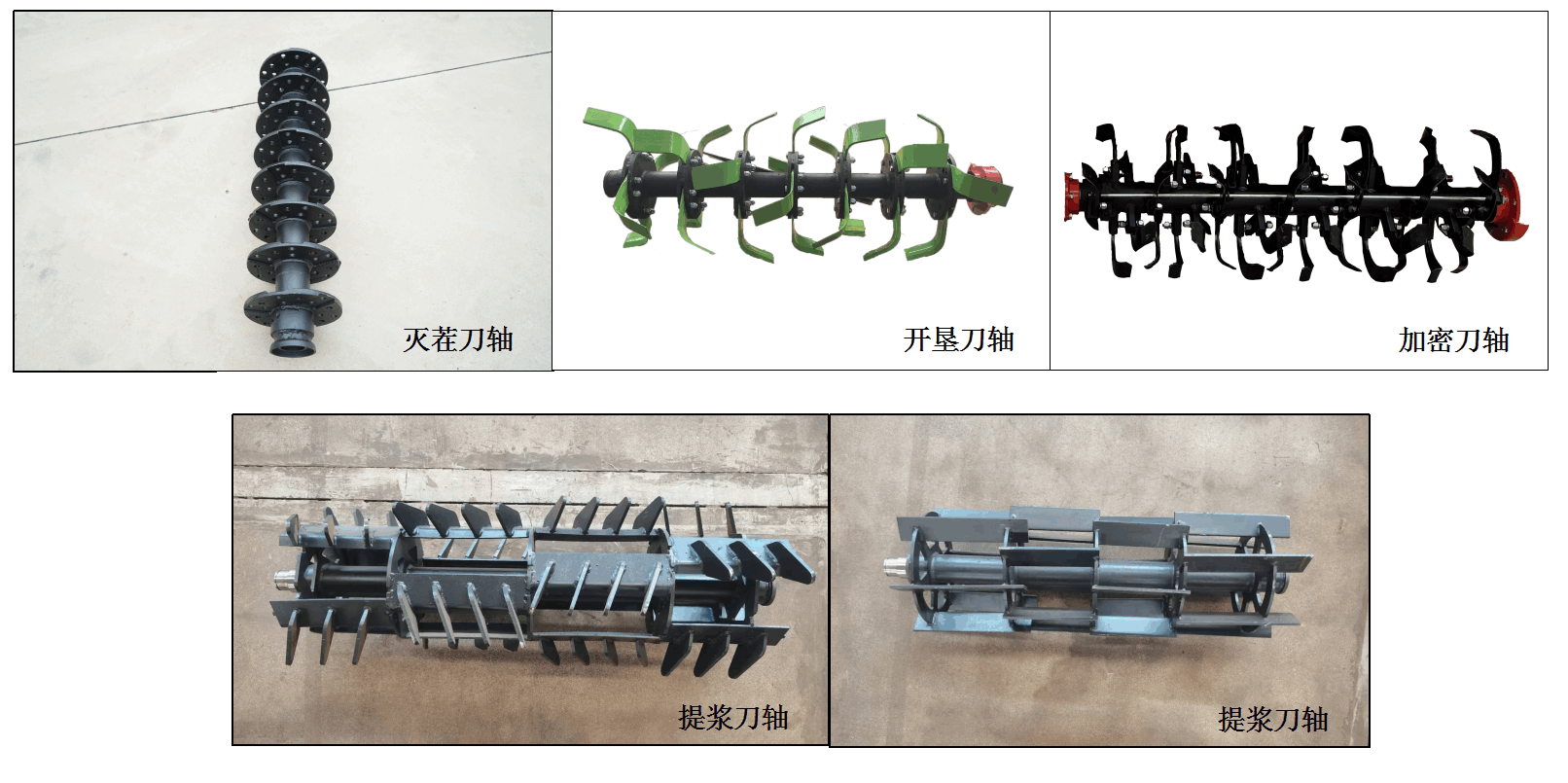 可根據水旱田及農藝需要配制:加密刀軸、提漿刀軸、開(kāi)墾刀軸、滅茬刀軸