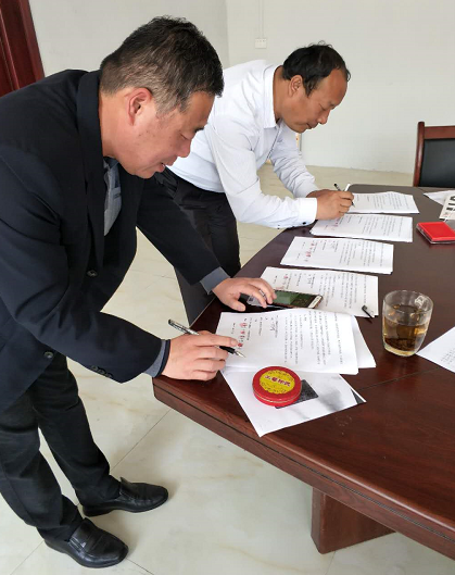 在縣百企辦逯亞森主任、大河屯鎮黨委張珀副書(shū)記、申沖村申慶振主任的見(jiàn)證下,各方與公司共同簽署了相關(guān)協(xié)議,正式將本批物資轉交給了申沖村委。