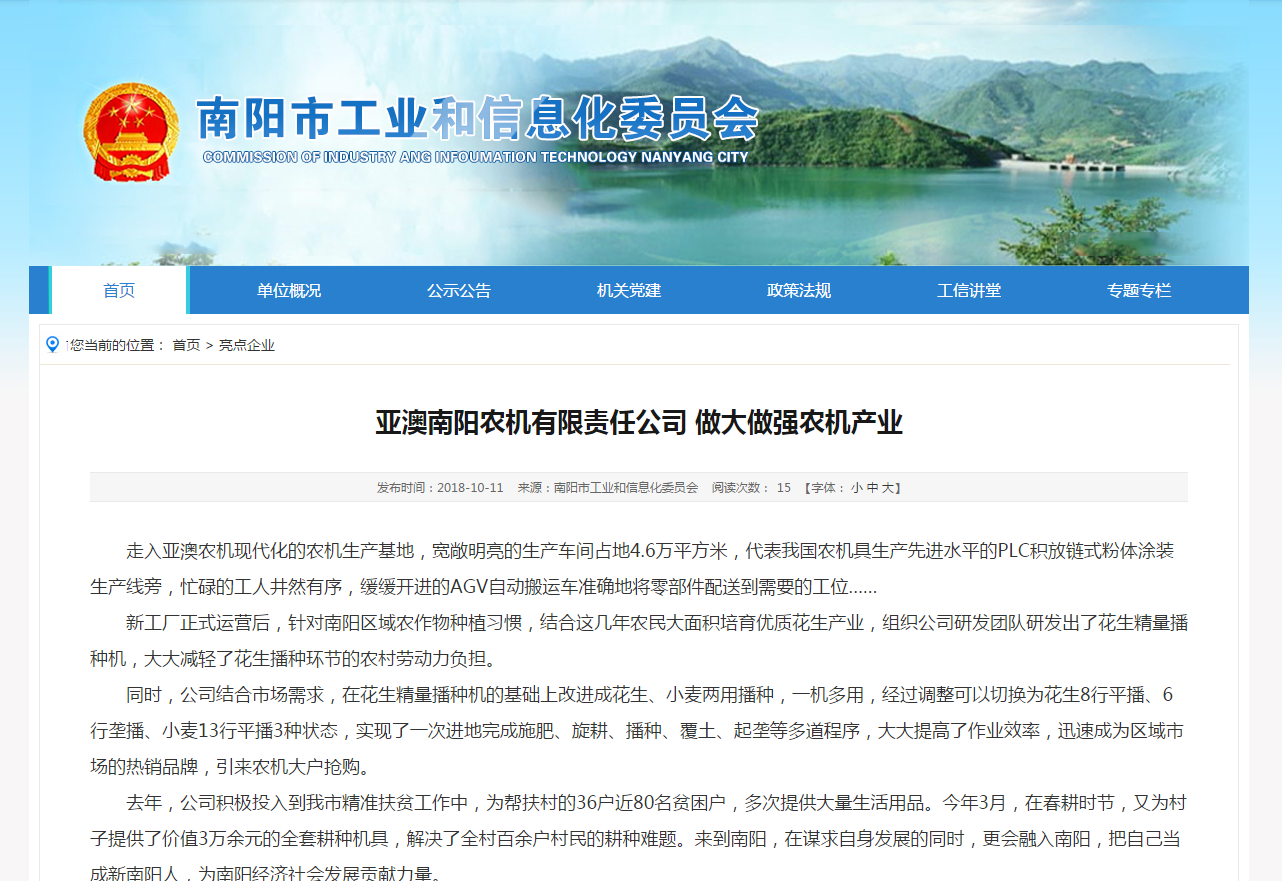 走入亞澳農(nóng)機(jī)現(xiàn)代化的農(nóng)機(jī)生產(chǎn)基地,寬敞明亮的生產(chǎn)車間占地4.6萬平方米,代表我國農(nóng)機(jī)具生產(chǎn)先進(jìn)水平的PLC積放鏈?zhǔn)椒垠w涂裝生產(chǎn)線旁,忙碌的工人井然有序,緩緩開進(jìn)的AGV自動搬運(yùn)車準(zhǔn)確地將零部件配送到需要的工位……