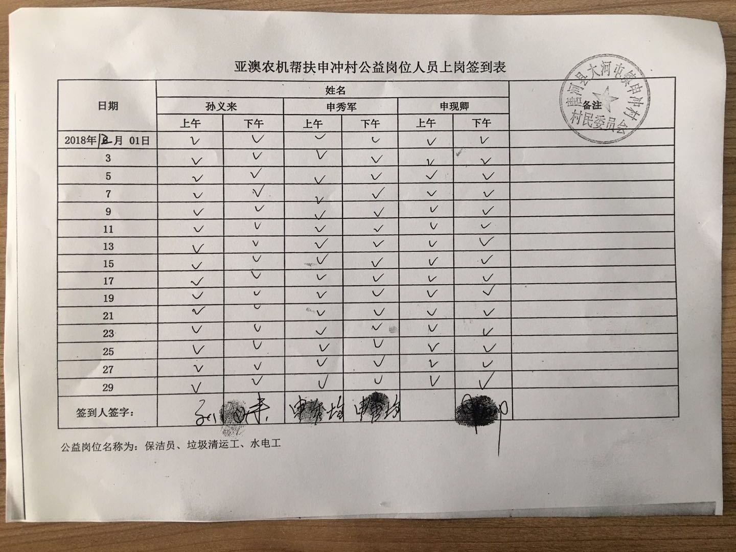 除此之外,我公司聯(lián)合村委會(huì )照顧一些特別貧困但有行動(dòng)能力的老人為村部垃圾清運、水電維修、村落清潔等,并為此購買(mǎi)公益崗位,每月定期給這些公益崗位發(fā)放工資,以確保他們的正常生活。