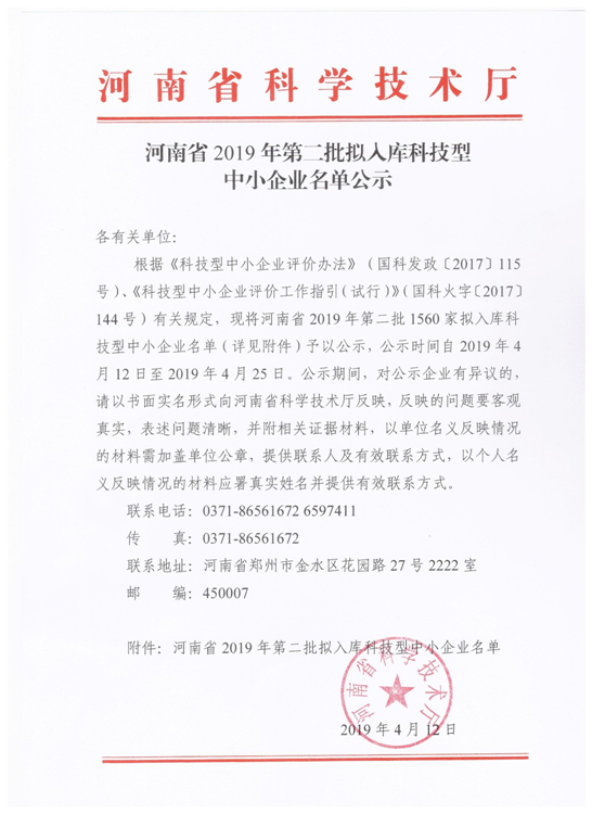公示.南陽(yáng) | 河南省2019年第二批擬入庫科技型中小企業(yè)名單公示