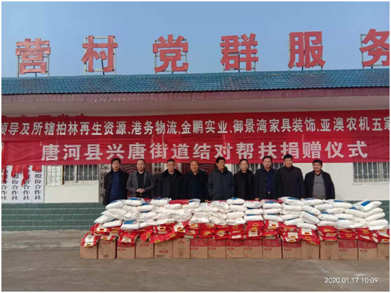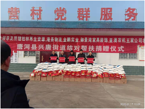 捐贈儀式上產(chǎn)業(yè)集聚區黨委書(shū)記劉清文、主任李國營(yíng)代表興唐街道黨委、政府向五家企業(yè)的義舉表示感謝。他指出,以亞澳農機為首的這五家公司,在完成自身企業(yè)負責包片貧困村脫貧的基礎上,還能再拿出現金3000元捐資扶貧,將自己的社會(huì )責任意識,由助力脫貧攻堅,走向現在回饋社會(huì )。代表著(zhù)我縣企業(yè)經(jīng)營(yíng)由起步走向成熟。他希望廣大困難群眾正確面對暫時(shí)的困難,樹(shù)立戰勝貧困、走出困境的信心和勇氣,發(fā)揚自力更生、艱苦奮斗的精神,不等不靠,在黨委、政府和社會(huì )各界的支持和幫助下,以自身的努力和實(shí)干來(lái)化解生產(chǎn)、生活中的各種困難,為構建美麗和諧的新唐河作出自己的貢獻。