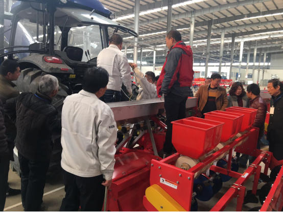 現場(chǎng)會(huì )上,亞澳專(zhuān)業(yè)技術(shù)人員及銷(xiāo)售經(jīng)理對我廠(chǎng)新研發(fā)的花生精量播種機做了詳細介紹,各鄉鎮社員及各站站長(cháng)針對花生種植技術(shù)、施肥方法和機械化播種等方面做了詳細講解。隨后,60名用戶(hù)和農技人員一同觀(guān)摩了機械化播種演示。