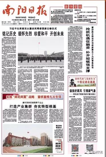 2017年 12月14日,南陽(yáng)日報頭版報道唐河產(chǎn)業(yè)發(fā)展,我公司榜上有名。以下為報道全文。